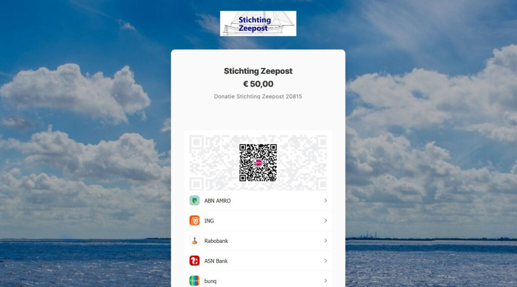 Op veler verzoek nu mogelijk: makkelijk doneren aan de Stichting Zeepost met een betaallink en QR.
