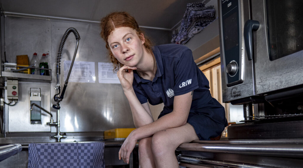 “Het was niet persé mijn droom om te gaan zeilen. Het was meer dat ik mijn beroep wilde inzetten om te kunnen reizen. Eerst wilde ik in het buitenland in een restaurant gaan werken, maar toen hoorde ik van een collega die kok was geworden op een binnenvaartschip. Ik bedacht me dat dat vast op zee ook wel mogelijk zou zijn en zette een advertentie op Facebook. Daar kreeg ik van best veel schepen een reactie op en zo ben ik gestart, eerst aan boord van de Morgenster.”