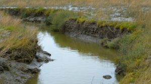 ,,De eerste twintig meter aan vegetatie op de kwelders remt de meeste sedimentatie”, verklaart onderzoeker Marinka van Puijenbroek die vanuit Wageningen Marine Research bij het onderzoek betrokken is. Als een kwelder overspoelt is het water middenin het gebied daardoor helderder dan aan de randen. ,,Alleen bij grote stormen krijg je meer sedimentafzetting in de kommen van kwelders.”