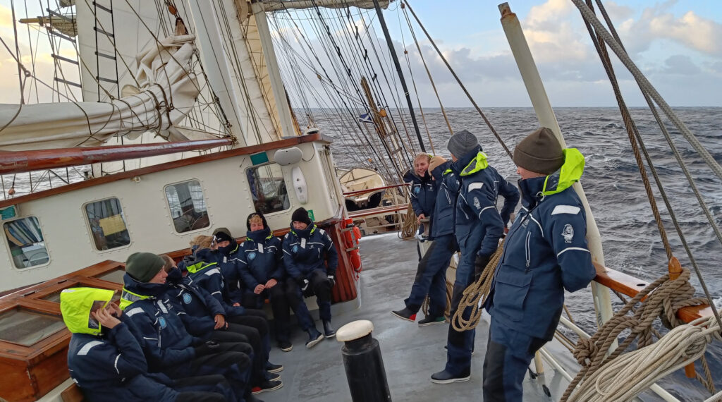 De sfeer aan boord was daardoor dubbel. We keken uit naar het zien van familie en vrienden, maar wilden allemaal nog wel langer door. De laatste dagen waren rustig en omdat de meesten klaar waren met hun schoolwerk, werd school al snel optioneel. De laatste tijd aan boord voelde daardoor magisch en ook een beetje als vakantie. In de keuken werden nog een aantal nieuwe gerechten op tafel gezet, zoals ‘kaassoep’ (gemaakt van allerlei restjes). Terwijl het buiten alsmaar kouder werd, voelde de groep alsmaar hechter.