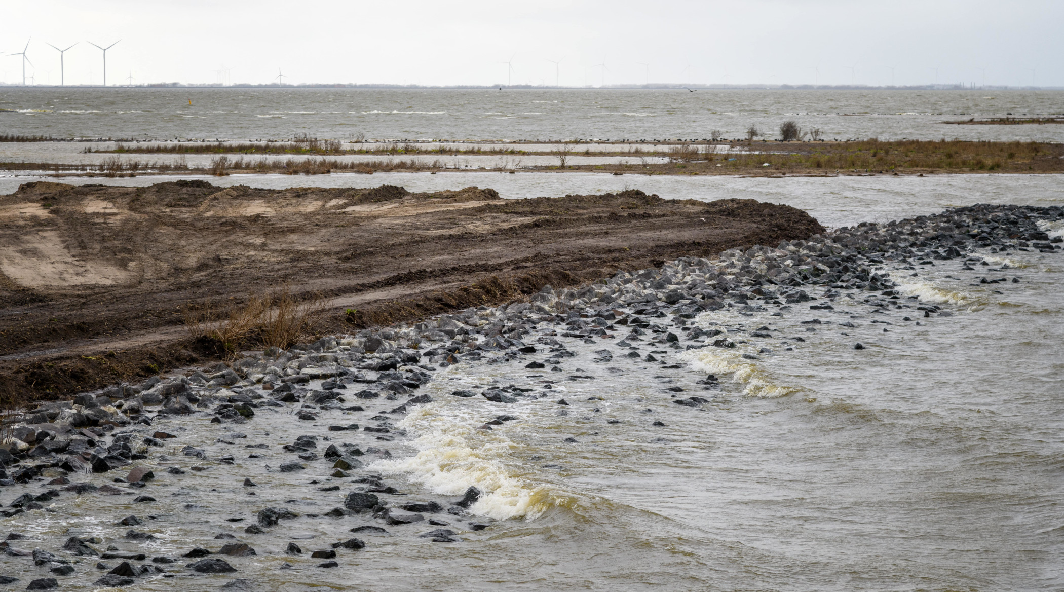 In de winter van 2023/2024 is er in twee weken tijd 500 ton breuksteen en 2800 m3 zand gestort op het Kreupeleiland. Afgelopen winter is er nog eens 2500 m3 stortsteen geplaatst. Deze onderhoudswerkzaamheden waren nodig om het eiland weer klaar te maken voor het broedseizoen. Leon Kelder was namens Staatsbosbeheer bij de werkzaamheden aanwezig. ‘In het IJsselmeer hebben we natuurlijk te maken met storm en verschillen in waterstanden. De zee geeft en de zee neemt, luidt zo’n mooi gezegde. Normaal gesproken redt de natuur zich wel, maar hier is dat ietsje anders. Zand dat wordt weggeslagen tijdens bijvoorbeeld een storm, komt niet terug omdat er geen eb of vloed meer is in het IJsselmeer.’