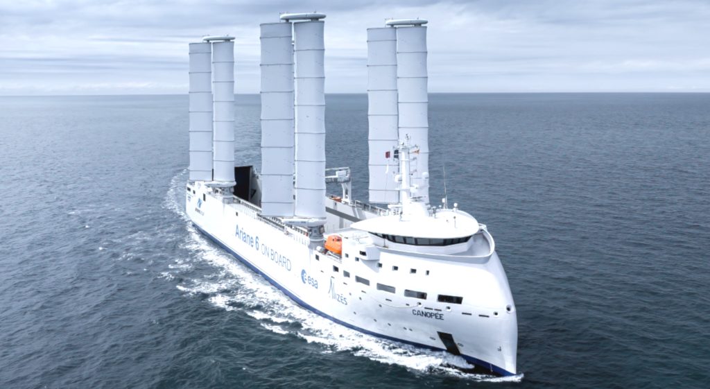 Het bijzondere schip is gebouwd in opdracht van de Franse joint venture Alizés. Alizés, bestaande uit de Franse rederijen Jifmar Offshore Services en Zéphyr & Borée, is speciaal opgericht om de tender voor het vervoer van de Ariane 6-raket te winnen. Met succes. Canopée laadt niet alleen in Rotterdam, maar ook in Bremen, Le Havre en Bordeaux.