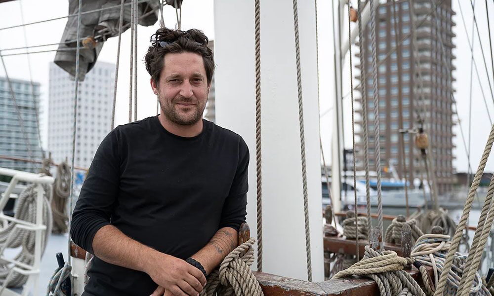 Tijdens de voorbereiding van de volgende lichting jongeren die met de driemaster Thalassa naar de Cariben vertrekt, interviewt verzekeraar EOC kapitein Samuel Dubois. ‘We kunnen als mens heel veel, maar de zee blijft toch de baas.’