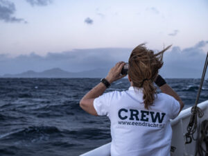 Steeds vaker zien we vogels. Eerder ook al af en toe, stormvogels, maar ze zijn nu in grotere getale. We zagen weer een vissersboot en ook is de oceaan onder ons een stuk minder diep: zo rond een kilometer nu. Het land komt dichterbij en al die tekenen van leven zijn wat bevreemdend na zo’n lange tijd in deze mini-maatschappij, waarbuiten niets anders dan oceaan lijkt te bestaan. De tijd is gevlogen. Ik ben trots op mezelf. Op hoe het me lukte bij mezelf te blijven, tijd te nemen om stil te staan en te reflecteren, om een balans te zoeken tussen mijn beide rollen, zodat ik kon fotograferen maar ook kon zeilen, en beide ten volste kon ervaren. Straks is de wereld er weer, met al haar complexiteit en drukte. Ik hoop dat ik de interne rust die ik hier voel met me mee neem.